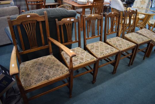Set of Four Dining Chairs with Upholstered Seats, plus One Carver