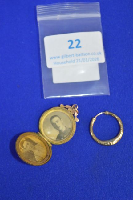 Rolled Gold Locket and Single Earring