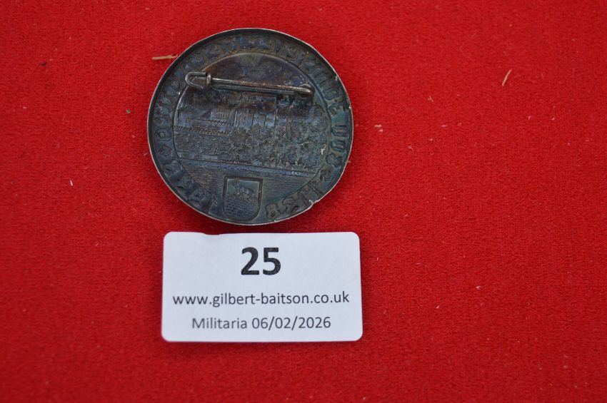 German Bernburg commemorative badge, circular bronze-toned example depicting townscape and arms, dated 1938, pin-back fitting.