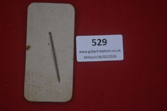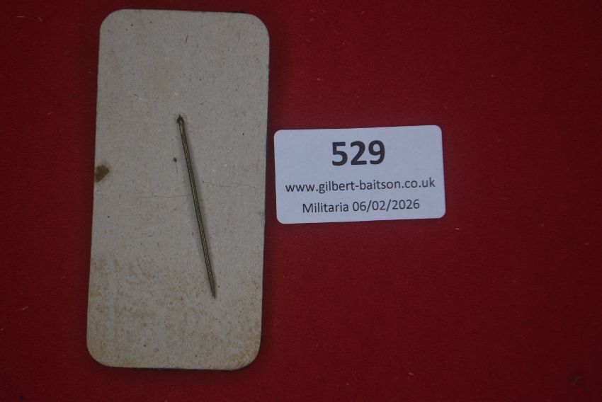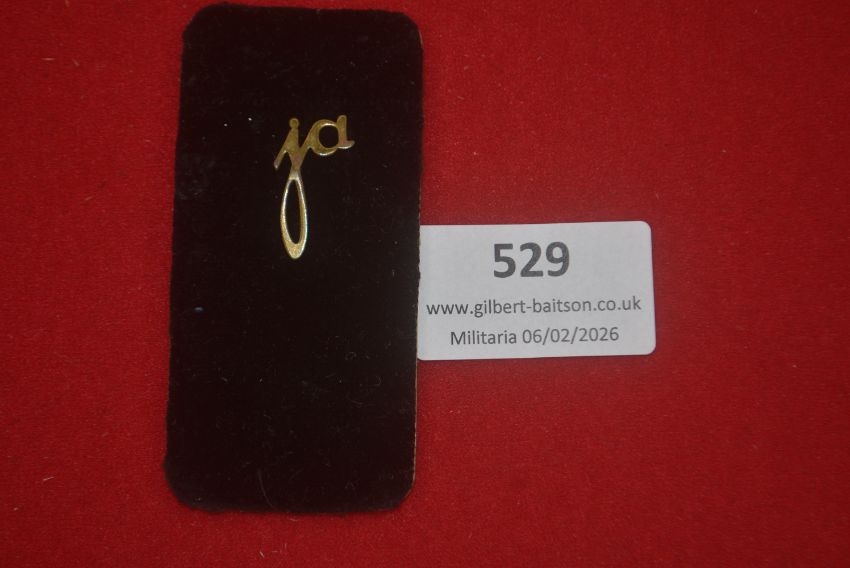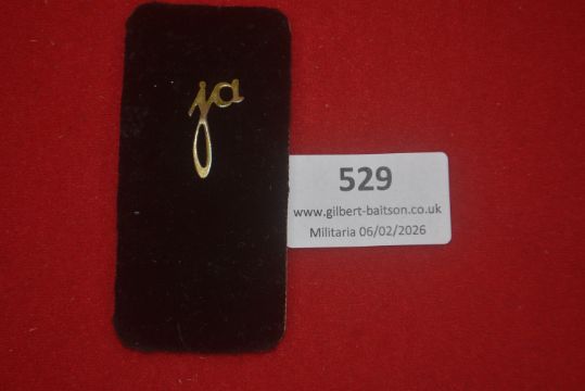 Small German gilt stick pin, stylised letterform design, mounted on original black velvet display card. Simple decorative or club-related example in good condition.