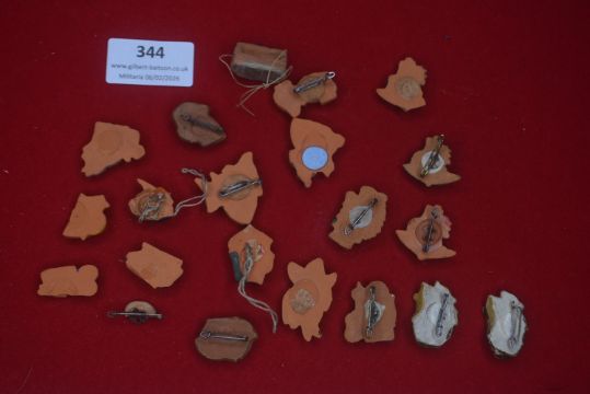A mixed group of German WHW ceramic badges and miniatures, including character heads, symbolic figures and plain reverse examples, with a variety of pin fittings and suspension cords; hand-painted, some chips and wear, condition varies.