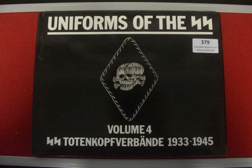 Uniforms of the SS – Volume 4: SS-Totenkopfverbände 1933–1945, reference volume with black covers and skull emblem, illustrated; light wear, condition consistent with age.
