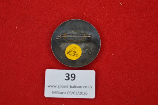 German Third Reich Blut und Boden commemorative badge, circular dark metal example depicting eagle clutching swastika, inscribed “Blut und Boden – Goslar 1937”, pin-back fitting.