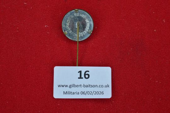 German charity stickpin, enamelled circular example with inscription “Wir helfen – Gegen Hunger und Kälte”, stickpin fitting.