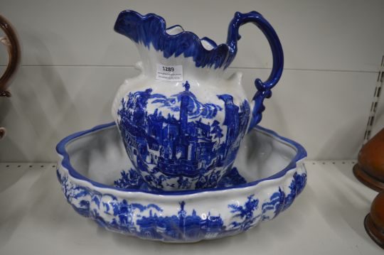 Vintage Victoria Ware Ironstone Flow Blue Pitcher and Wash Bowl Set