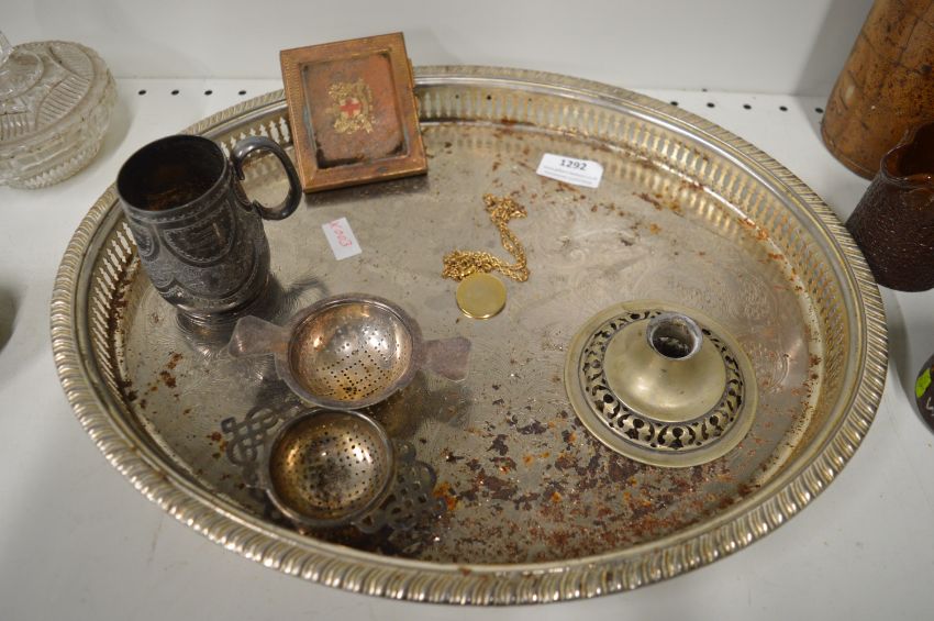 Silver Plated Items Serving Tray, Tea Strainers, Mug, etc.