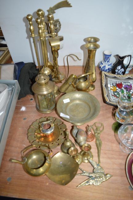 Quantity of Assorted Brassware, Companion Sets, Vases, Bottle Opener, etc.
