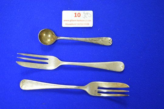 2x Hallmarked Silver Cake Fork and a Mustard Spoon ~45g total