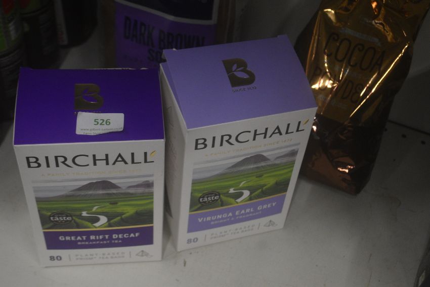 2x Boxes of Birchall Teabags, and 1x Pack of Freshers Coco Powder