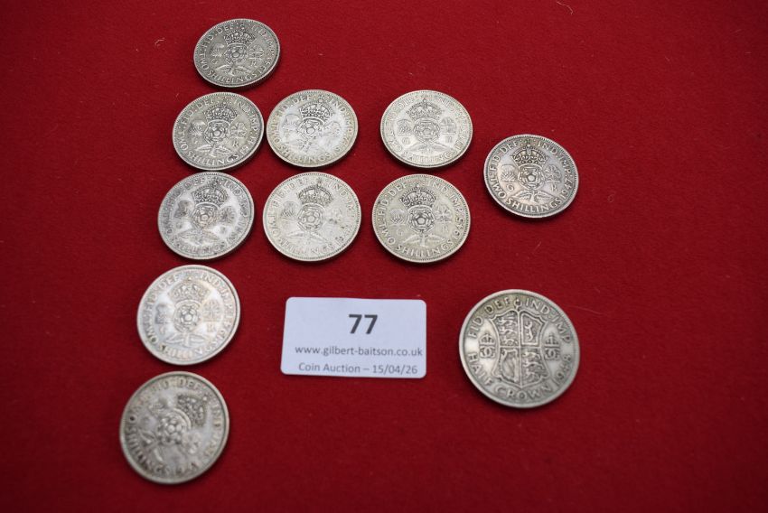 Great Britain silver coins (10). George VI issues comprising florins and halfcrowns, various dates 1940s with crowned shield and royal arms reverses.